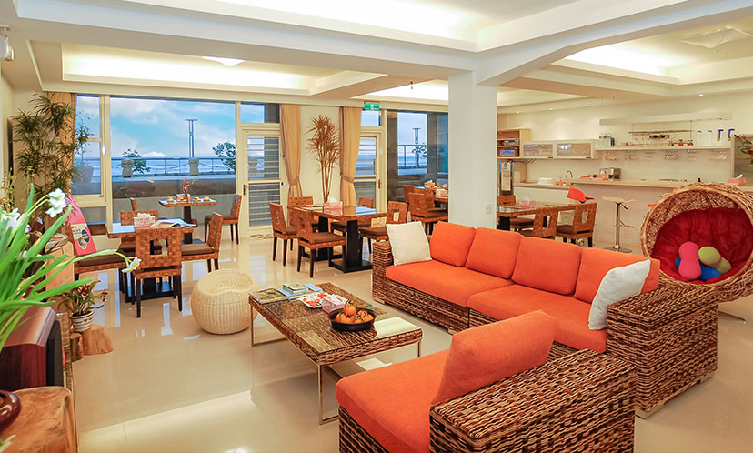 ●  客廳超大50坪,備有烤麵包機、咖啡機、飲料、水果,住宿客人可自由取用。