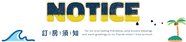※  延期住宿:請於住宿前一週告知,將可辦理退費或保留訂金三個月,並於期限內擇期住宿。